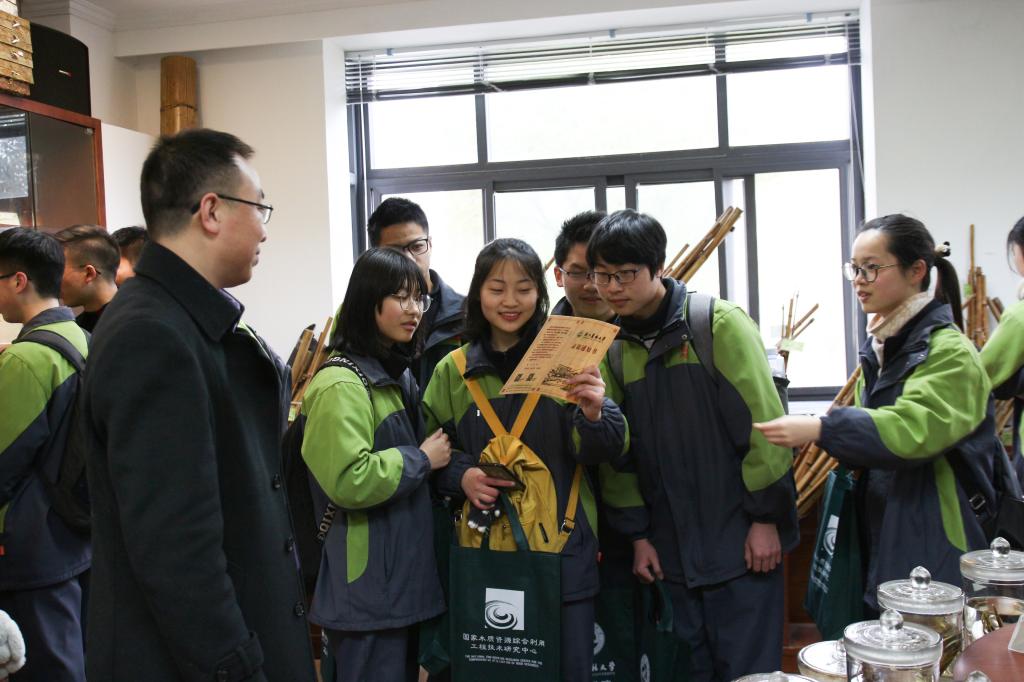 煙雨蒙蒙之中,在工程學院老師、學生黨員志愿者的引導下,德清一中師生分兩組參觀了校史館、國家工程中心、張院士珍貴木材標本庫、森林文化館、園林設計展廳和動物醫院等。一路參觀走來,大家緊隨講解員的步伐,認真觀看各點展示,面對一件件精美的各式標本、一臺臺精密的科研儀器、一項項創新的科研成果、一組組精致的設計作品……同學們時而傾聽講解、時而低聲交流、時而拍照留念,眼里滿是新奇與興奮。